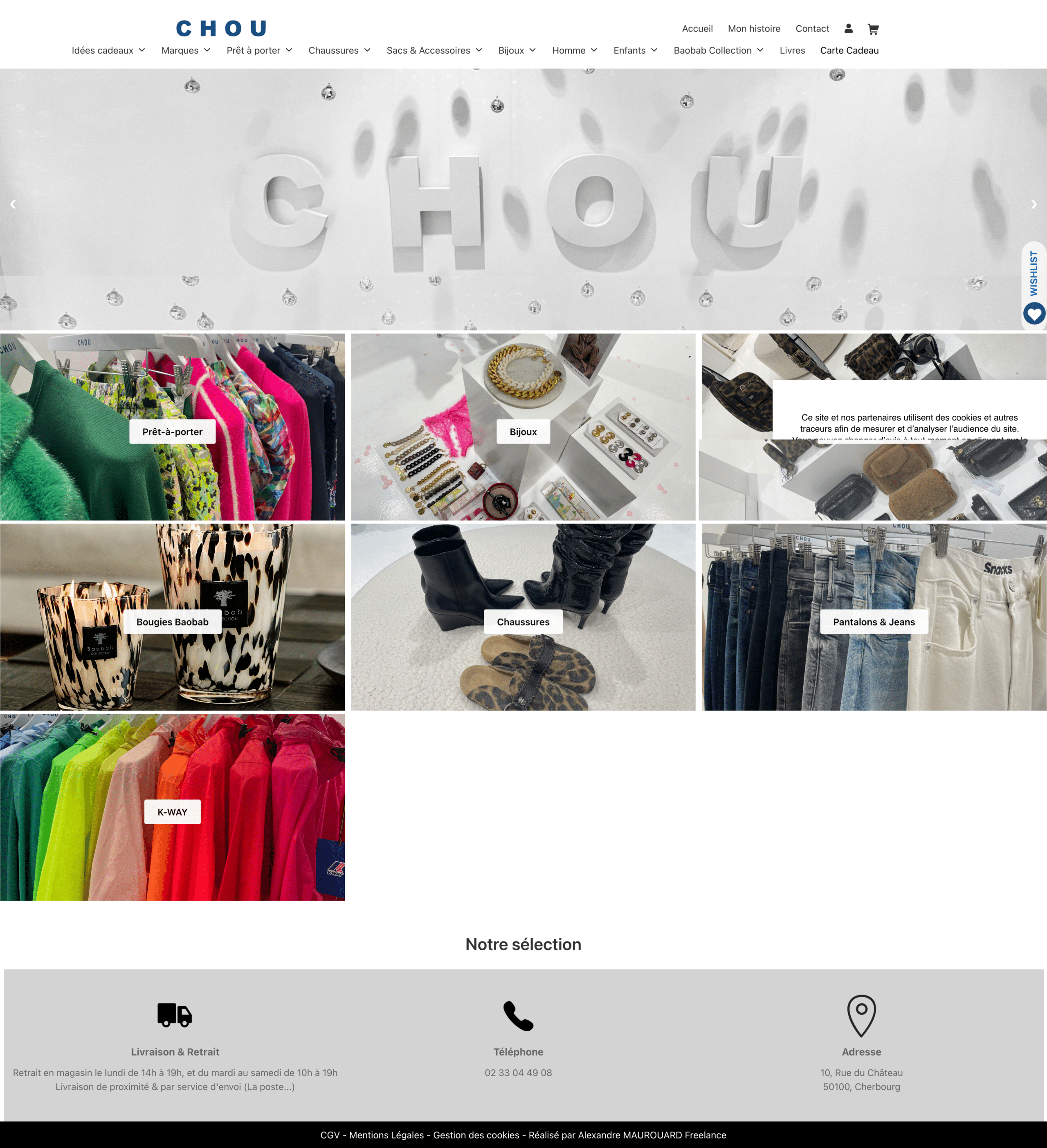 Découvrez et commandez dès à présent vos articles de la boutique CHOU Cherbourg grâce à leur offre Click&Collect disponible sur leur site.